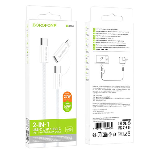 Теги: Кабель Borofone BX104 Primo two-in-one 60W Type-C to Type-C/iP PD27W (Белый), кабель Borofone, кабель 2 в 1, Type-C Lightning, кабель iPhone Android, быстрая зарядка, PD 27W, кабель USB-C