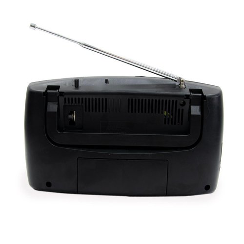 Оснащен хорошим звуком, имеет автономное питание и телескопическую антенну.