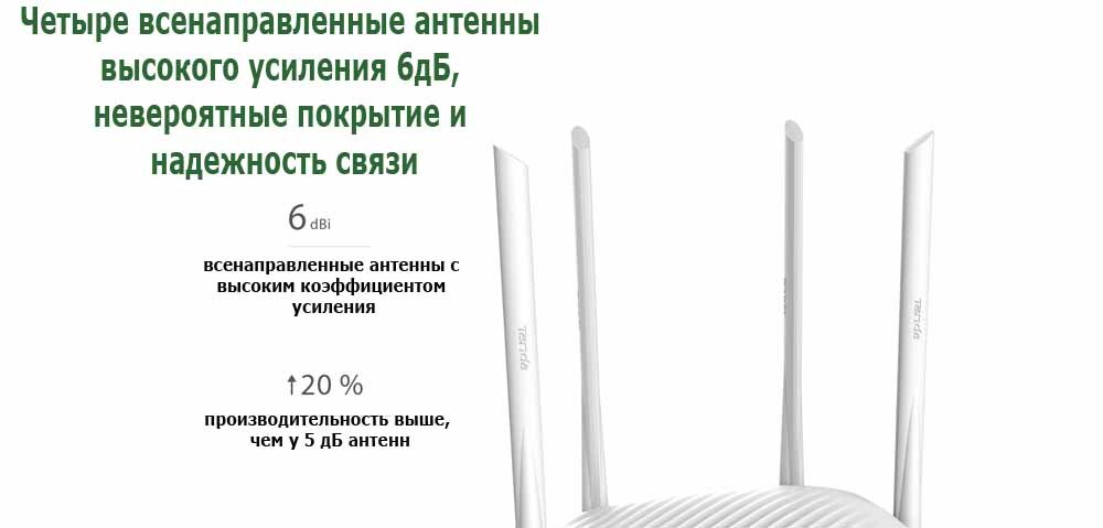 Четыре всенаправленные антенны высокого усиления 6дБ, невероятные покрытие и надежность связи