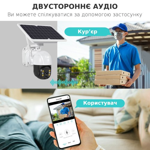 Интегрированная солнечная панель обеспечивает постоянное энергоснабжение, что позволяет работать камере даже при отсутствии электричества. Камера оснащена модулем Wi-Fi и модулем 4G для беспроводной передачи видеопотока, что обеспечивает удобство установки и использования. Высококачественная HD-разрешение обеспечивает четкое и детальное видеонаблюдение днем и ночью. Встроенные микрофон и динамик позволяют осуществлять двустороннюю аудиосвязь через камеру, обеспечивая возможность общения с посетителями или предупреждения о нештатных ситуациях.