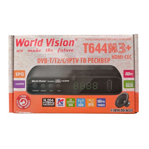 Теги: Ресивер World Vision T644M3 Plus, ресивер DVB-T2, цифровое ТВ, World Vision, IPTV приставка, медиаплеер AC3, Wi-Fi адаптер, обновление ПО